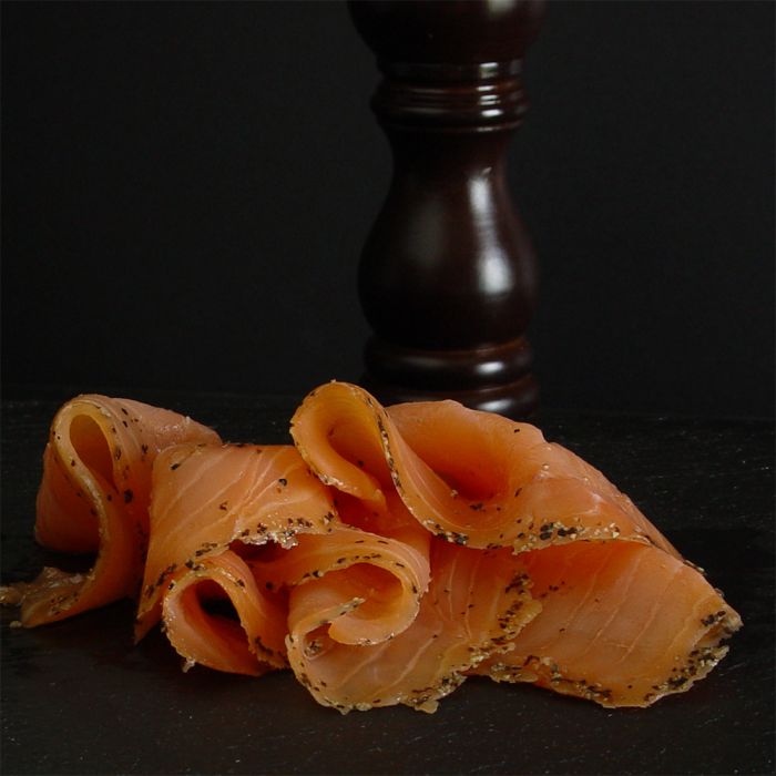 Ingredients: Atlantic salmon, salt, cane sugar, bourbon, black pepper, and hardwood smoke.Â