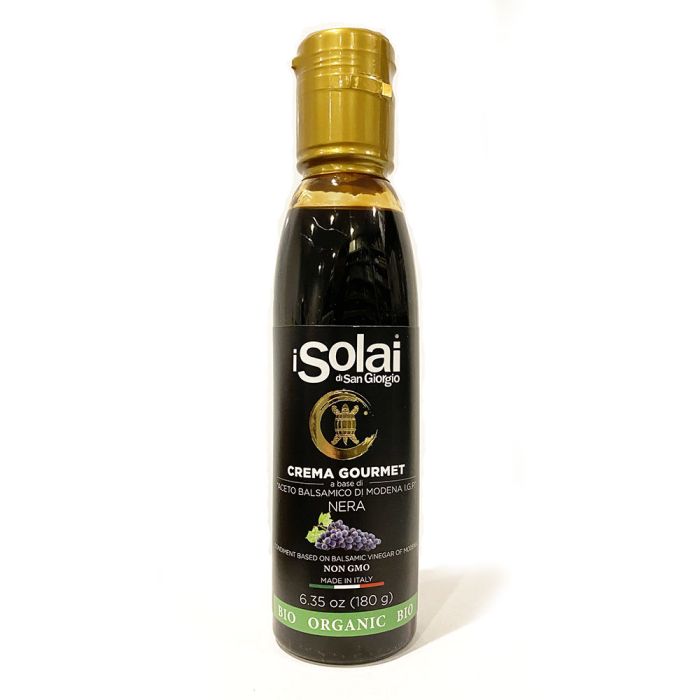 i Solai’s balsamic glazes are made from PGI balsamic vinegar of Modena, which has been aged for two years, and use only grape juice, balsamic vinegar and non-GMO starch without the use of dyes or preservatives. There is no colorant or caramel added, and the beauty of this product is that it’s reduced in a precise way that prevents the sugars in the balsamic from crystalizing or producing carcinogenic properties due to the careful temperature control. Classic flavor.
