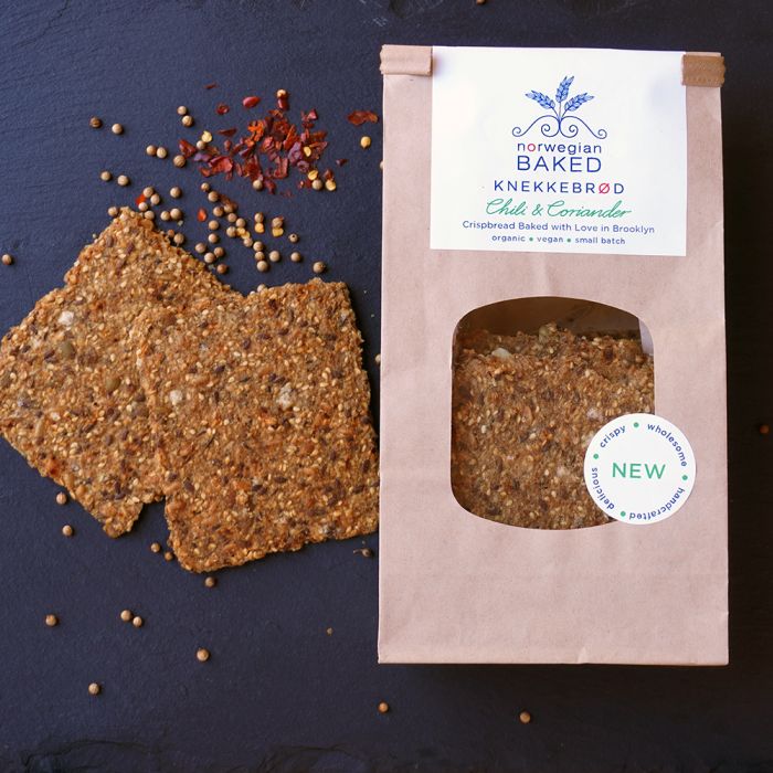 Chili & Coriander adds an herbal vibrancy to Knekkebrød, or Crispbread, is a Nordic tradition in all Scandinavian homes. It's wholesome, versatile, fibrous, naturally wheat-free and showcases whole grains and nutrient-rich seeds.